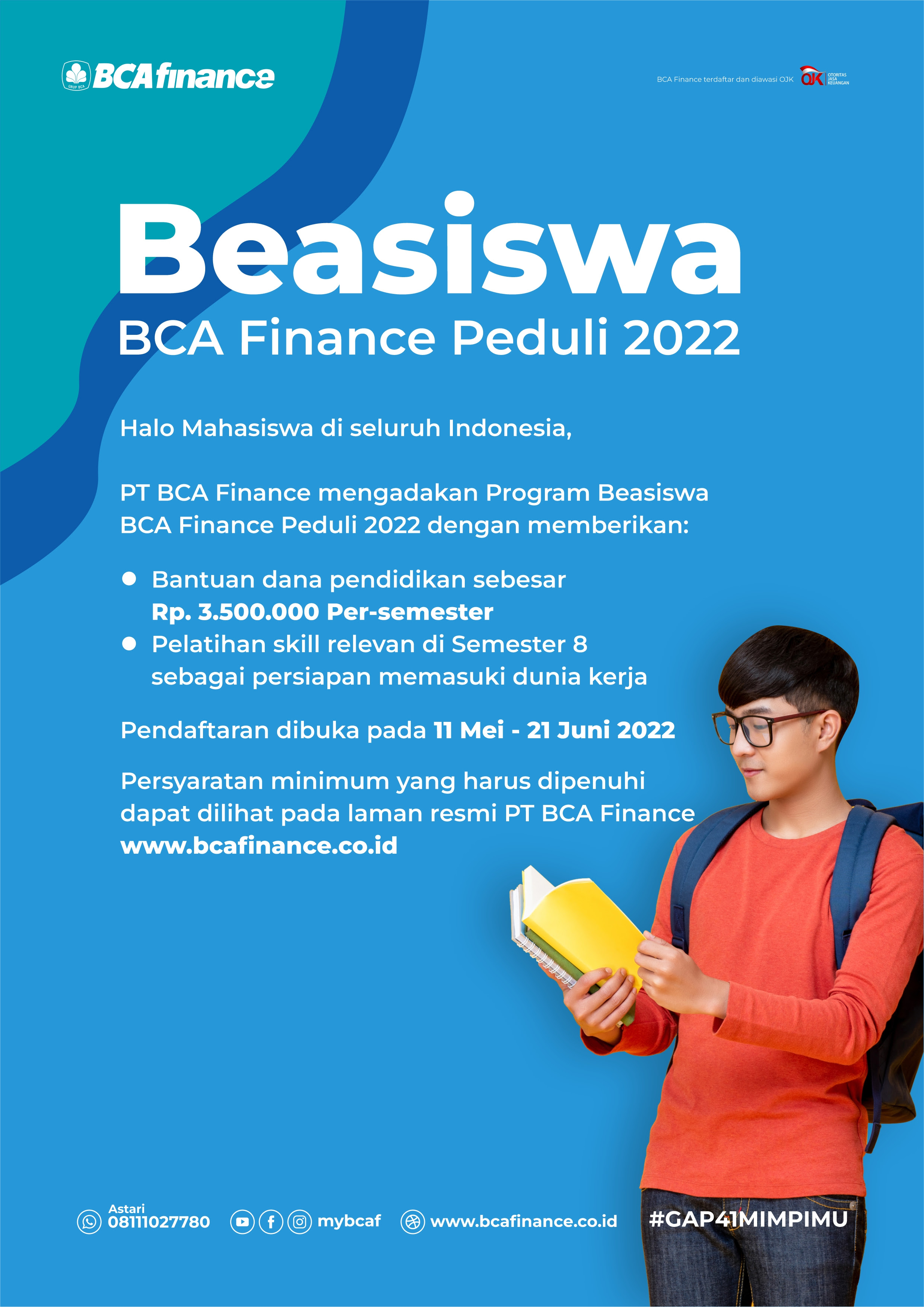 Pemberitahuan Beasiswa BCA Finance Peduli 2022.