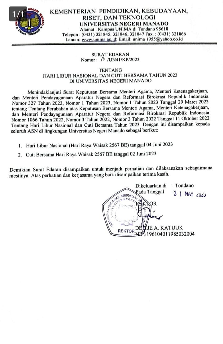 Edaran Hari Libur Nasional dan Cuti Bersama