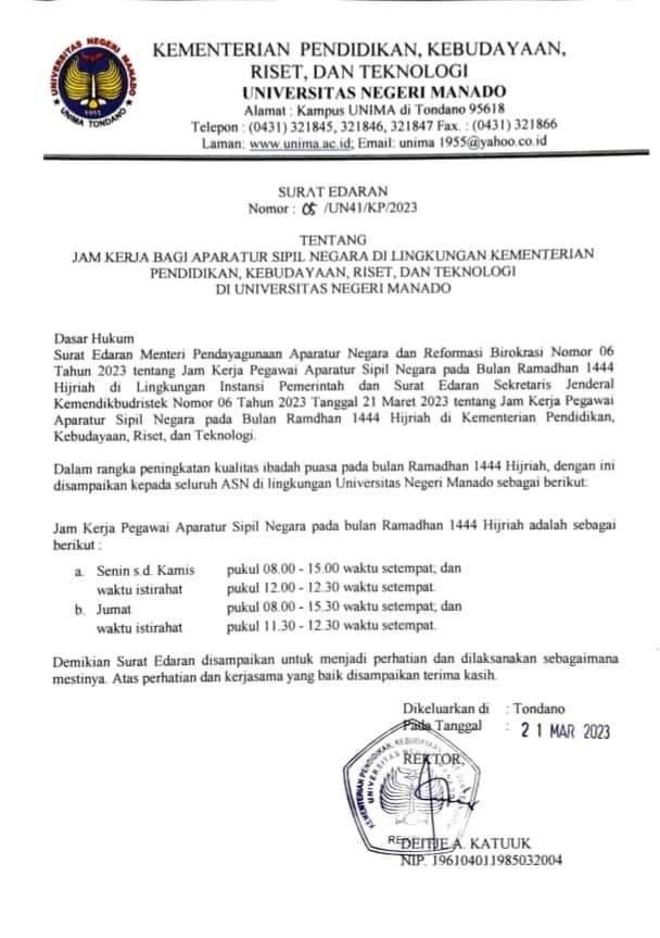 Edaran Jam Kerja ASN Kemdikburistek di bulan puasa tahun 2023