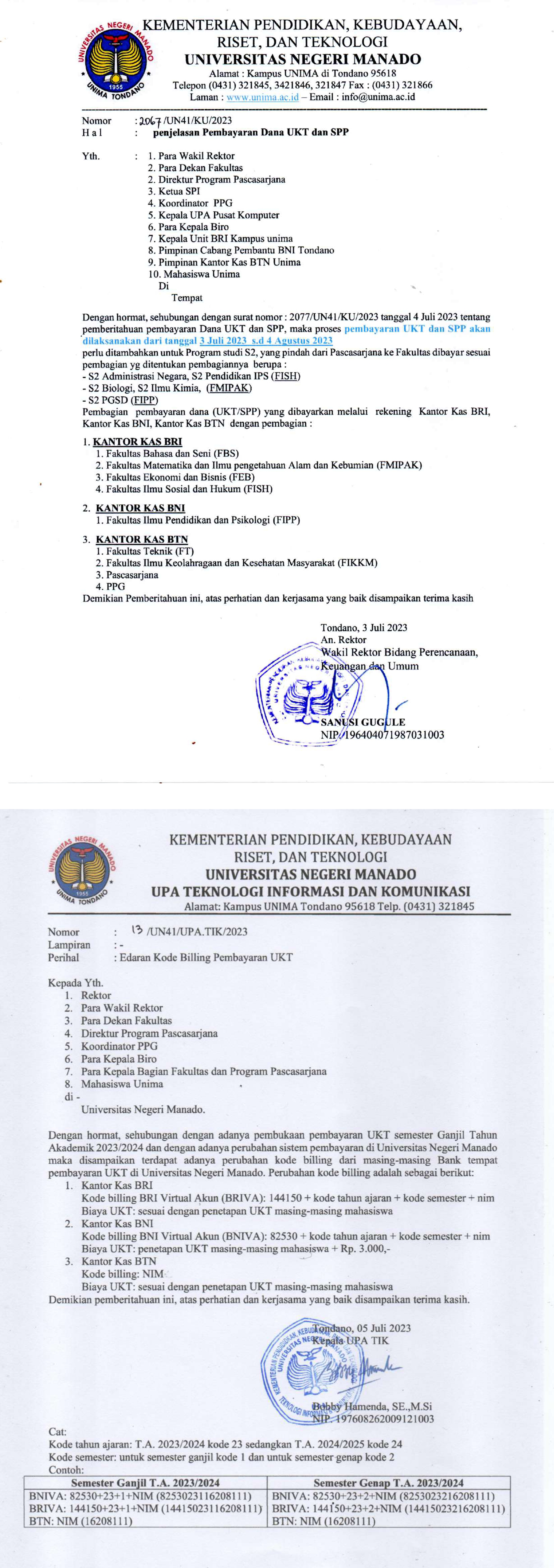 Edaran Pembayaran UKT 2023 & Kode Billing Pembayaran UKT