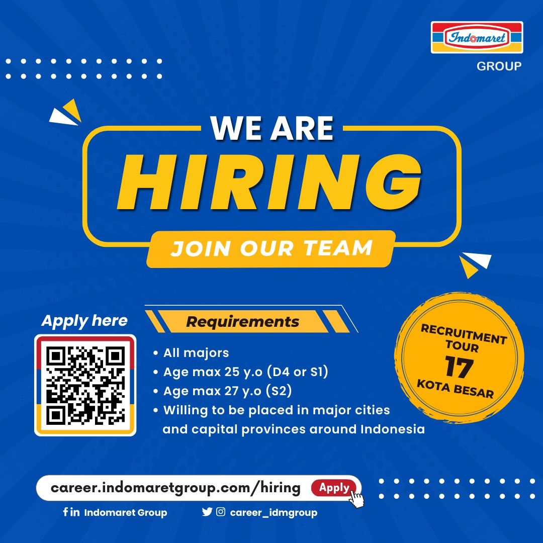 Berikut link pendaftarannya: https://career.indomaretgroup.com/hiring atau dapat dilihat pada poster terlampir.