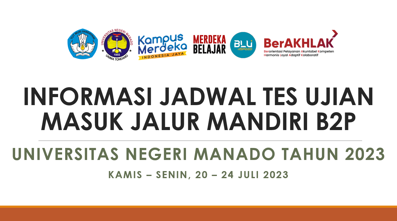 Informasi Jadwal Tes Ujian Masuk Jalur Mandiri B2P Gelombang 2 Universitas Negeri Manado Tahun 2023