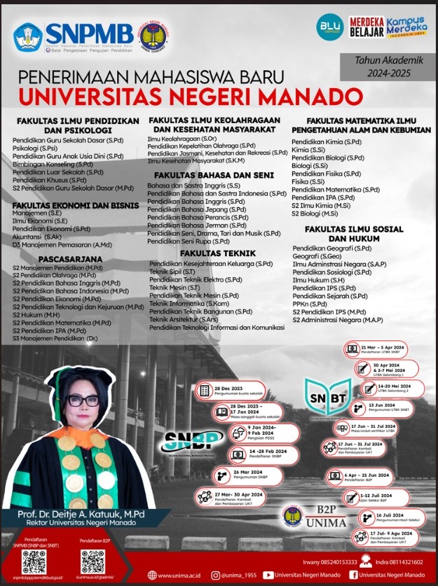 Informasi Penerimaan Mahasiswa Baru Universitas Negeri Manado Tahun Ajaran 2024/2025