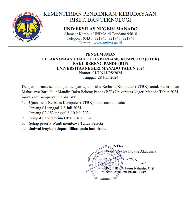 Jadwal CBT Penerimaan Mahasiswa Baru Jalur B2P dan Pascasarjana Tahun 2024