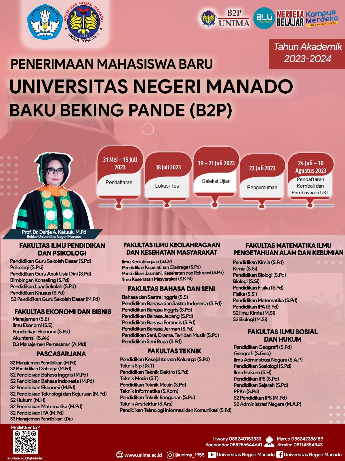 Pendaftaran dan Prosedurnya dapat diakses melalui: http://si.unima.ac.id/gtadmisi