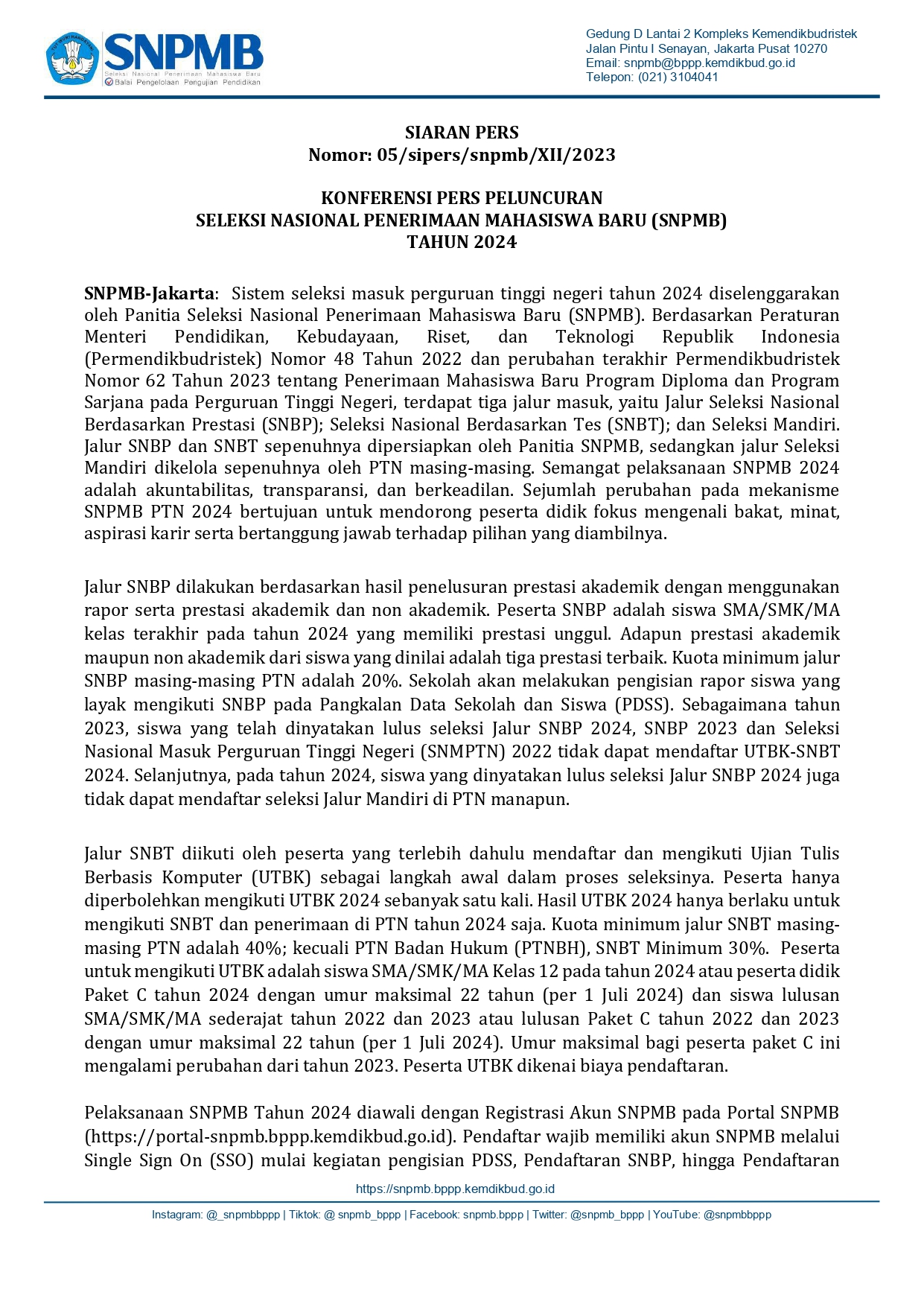 KONFERENSI PERS PELUNCURAN SELEKSI NASIONAL PENERIMAAN MAHASISWA BARU (SNPMB) TAHUN 2024