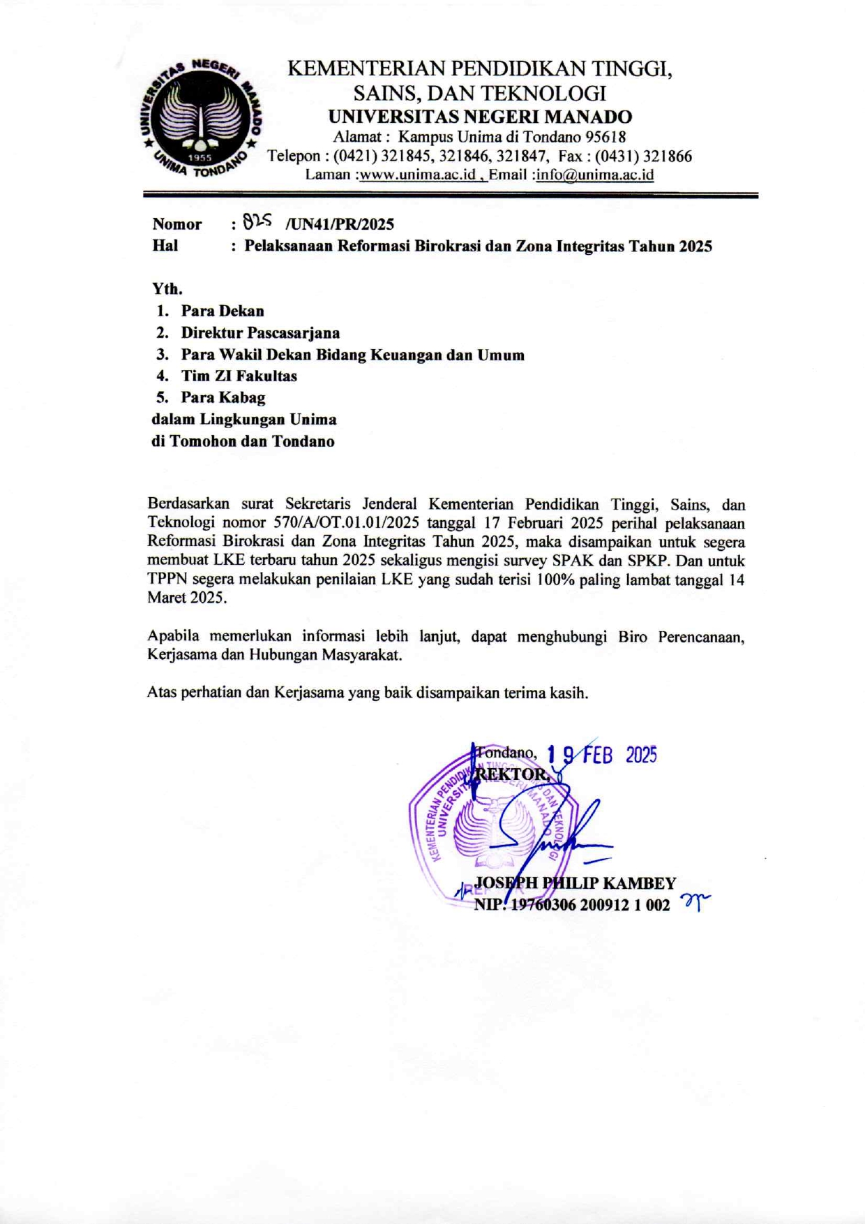 Informasi mengenai Pelaksanaan Reformasi Birokrasi dan Zona Integritas Tahun 2025 dapat dilihat detailnya pada file lampiran dibawah ini