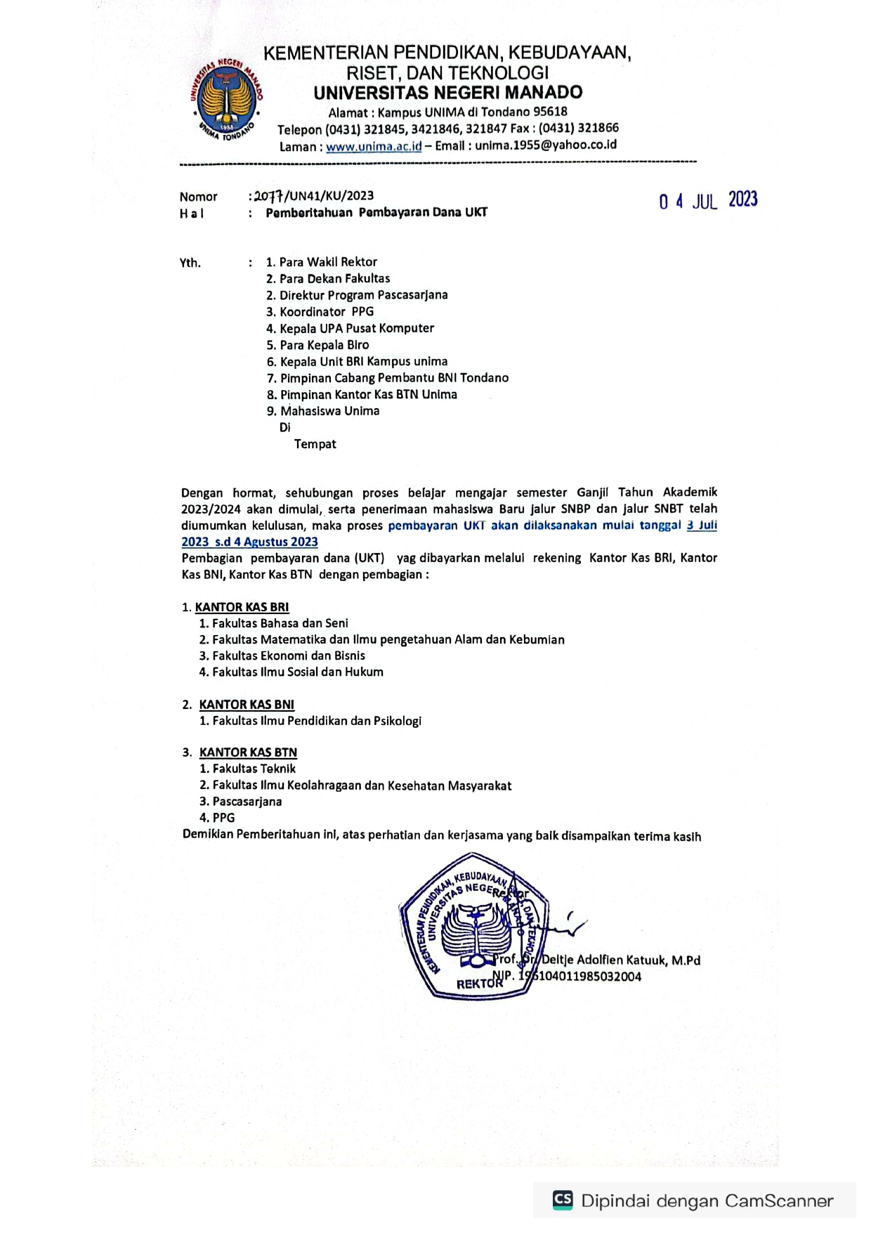 Pemberitahuan Pembayaran UKT Semester Ganjil TA 2023/2024