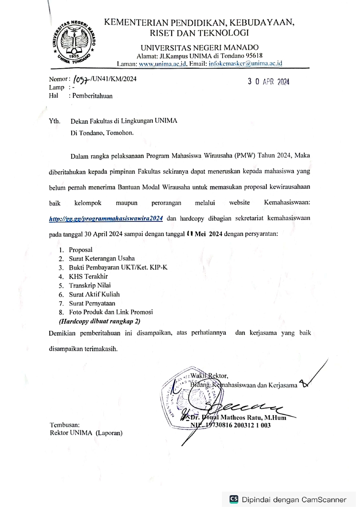 Pemberitahuan Program Mahasiswa Wirausaha Tahun 2024