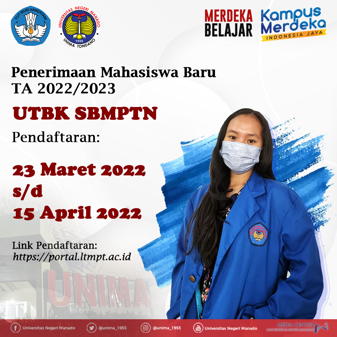 Info SBMPTN di https://unima.ac.id/data_sbmptn atau pada laman resmi LTMPT https://ltmpt.ac.id