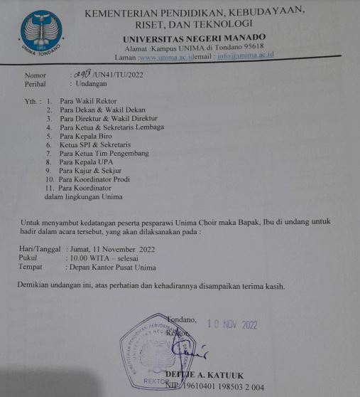 Penyambutan Peserta Pesparawi UNIMA Choir