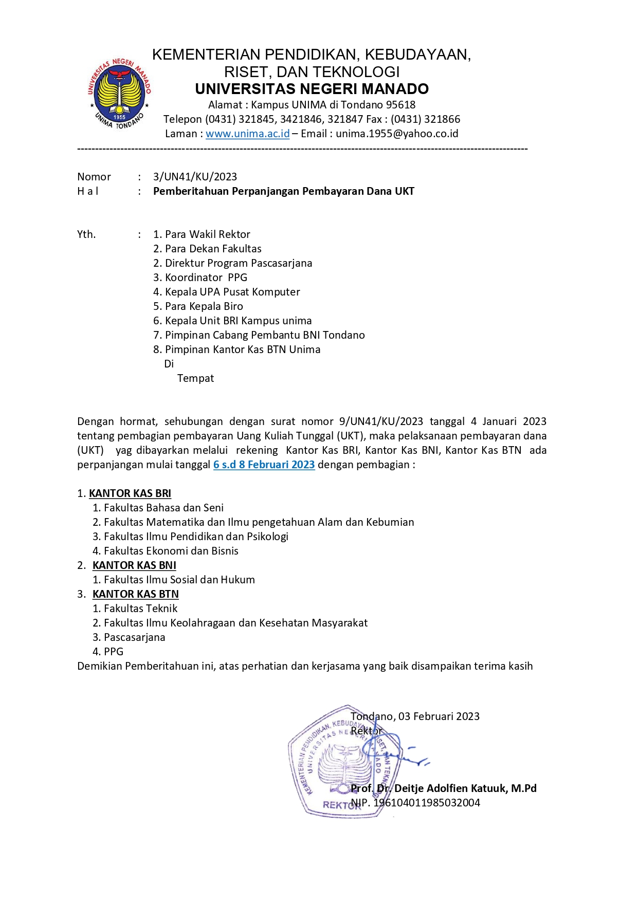 Perpanjangan Pembayaran UKT Semester Genap TA 2022/2023