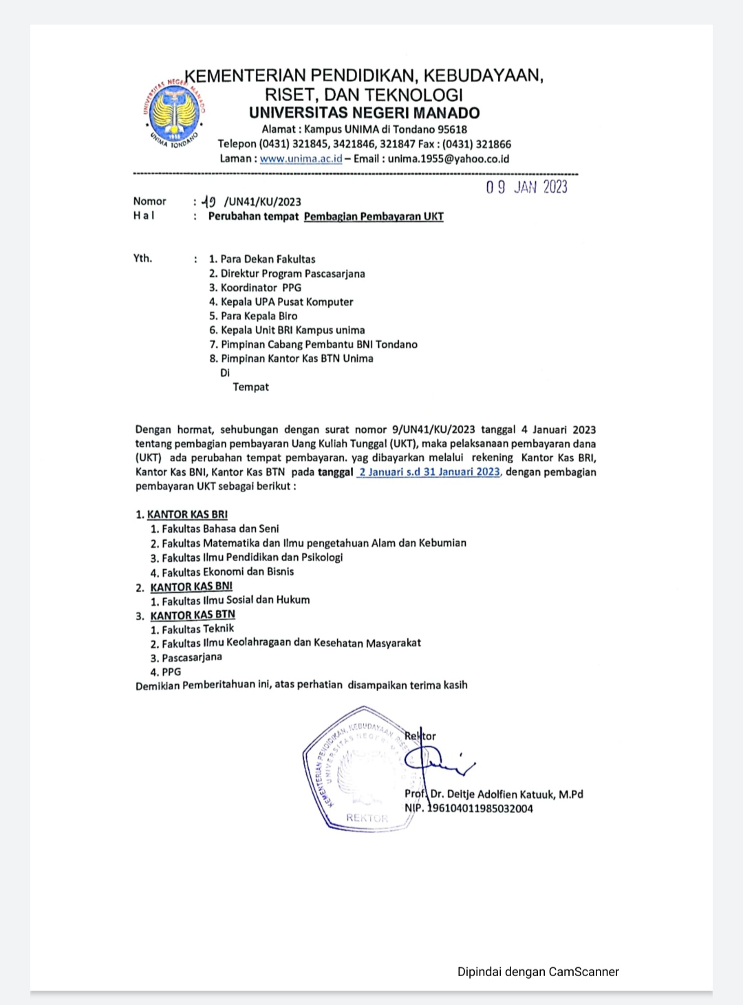 Perubahan tempat pembayaran UKT Semester Genap TA 2022/2023