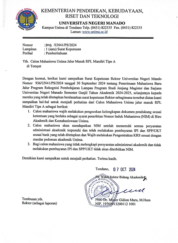 untuk SK Penerimaan Mahasiswa Baru Jalur RPL TA 2024/2025 terlampir pada file di bawah ini