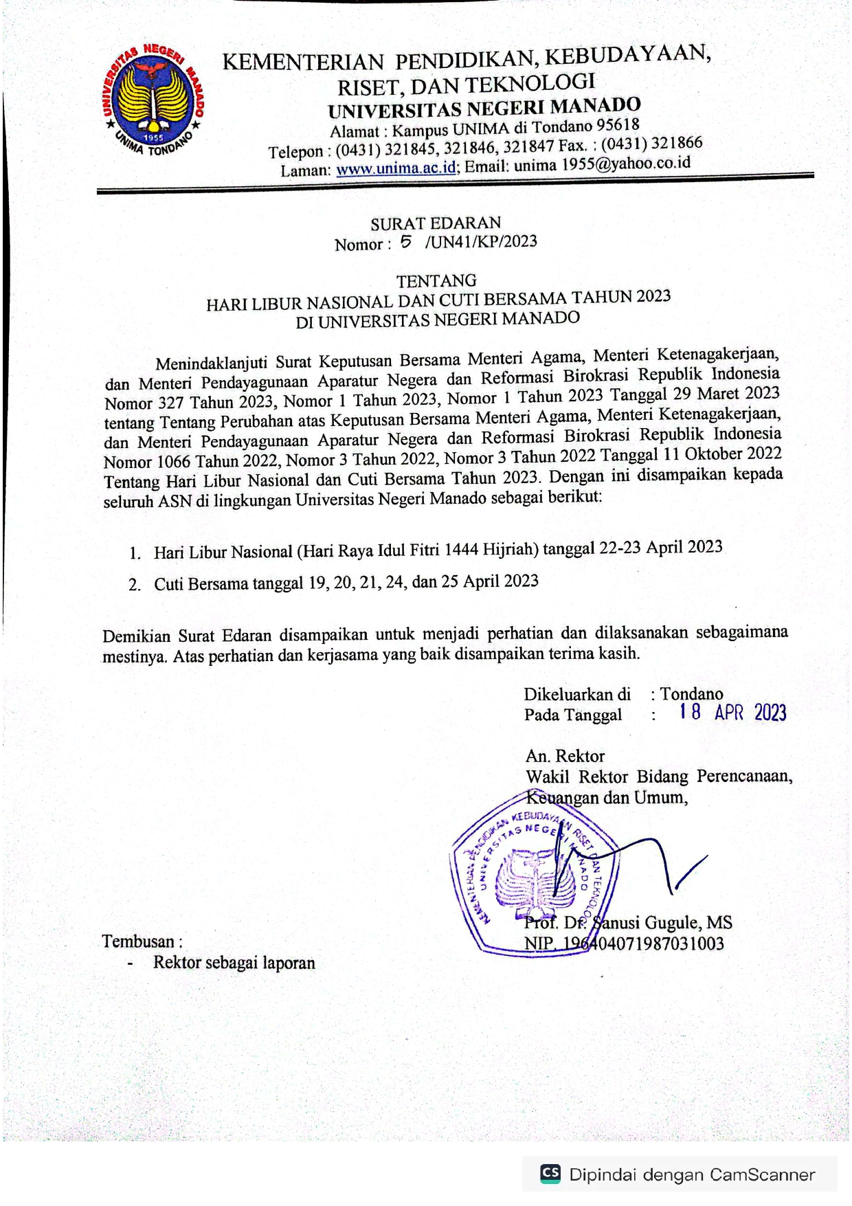 Surat Edaran Libur dan Cuti Bersama Tahun 2023