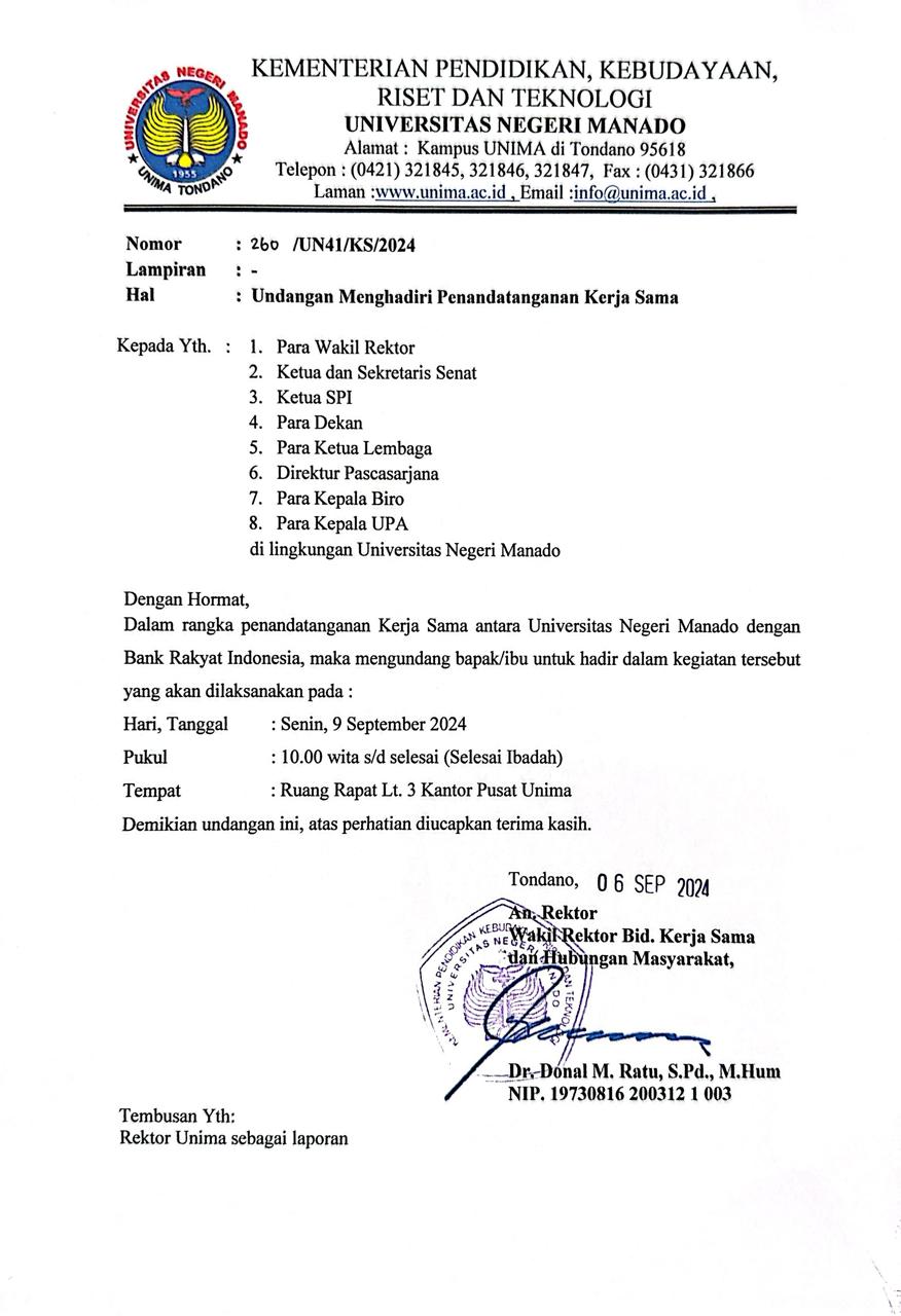 Undangan Menghadiri Penandatanganan Kerja Sama dengan BRI